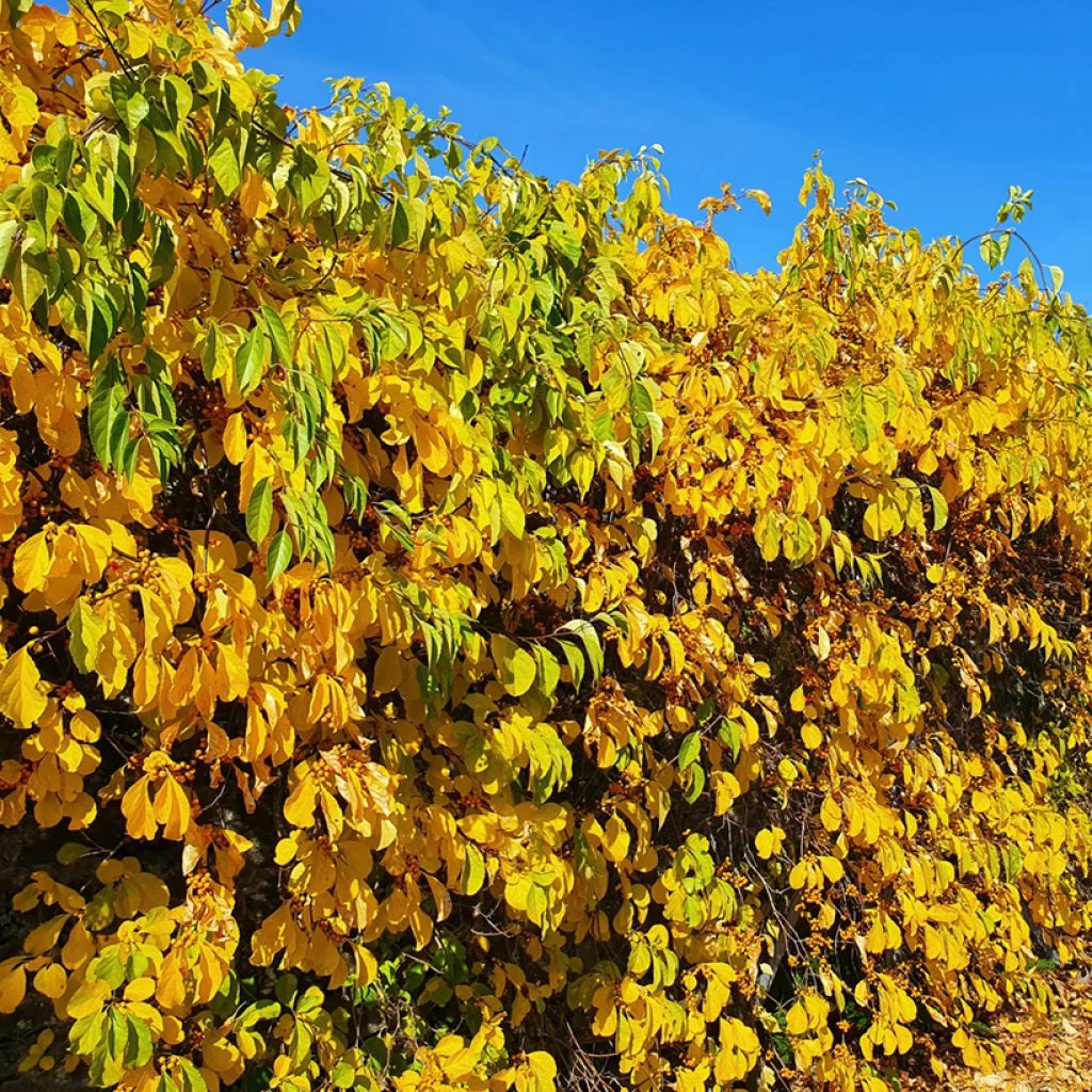 Le Celastrus orbiculatus Hercules est un arbuste grimpant très rustique, une plante luxuriante aux tiges volubiles dont le feuillage d’automne, d’un beau jaune clair, est une parure pour le jardin. C’est une très belle variété mâle qui pollinise les variétés femelles telles que Diana par exemple.